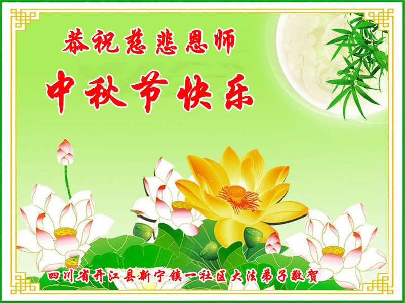 四川省达州市开江县新宁镇一社区大法弟子恭祝慈悲恩师中秋节快乐!