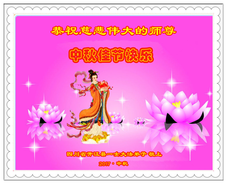 四川省达州市开江县一女大法弟子恭祝慈悲伟大的师尊中秋佳节快乐!