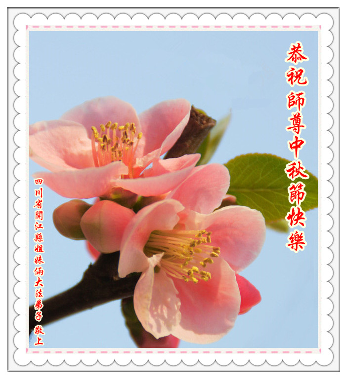 四川省开江县姐妹俩大法弟子恭祝师尊中秋节快乐! 四川省达州市开江县一社区大法弟子恭祝慈悲伟大的师尊中秋佳节快乐!