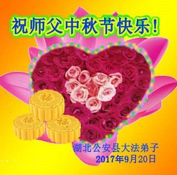 中秋节即将到来,在这团圆的节日里,我深深感恩慈悲伟大的师尊对弟子的看护和保护!感恩师尊的慈悲救度!弟子叩拜师尊您辛苦了! 感恩慈悲伟大的师尊使我这个满身业债的人变的无病一身轻,使我成为一个大法弟子。师尊啊,您给予我太多太多,无法用语言表达,每每想起都是泪水涟涟。弟子只有精進多学法,遇事不冲动向内找,做好三件事。不辜负师尊的慈悲苦心救度,早日同化“真、善、忍”宇宙特性,同化大法,跟师父回家。 代我母亲祝师尊中秋节快乐! 弟子再次叩拜师尊中秋节快乐! 盼师尊早回大陆团圆! 大法弟子 二零一七年九月十九日 大陆一大法弟子及学法小组全体同修恭祝慈悲伟大的师尊中秋节快乐!