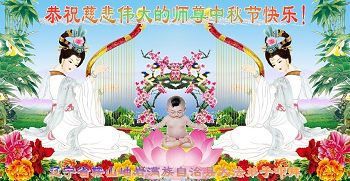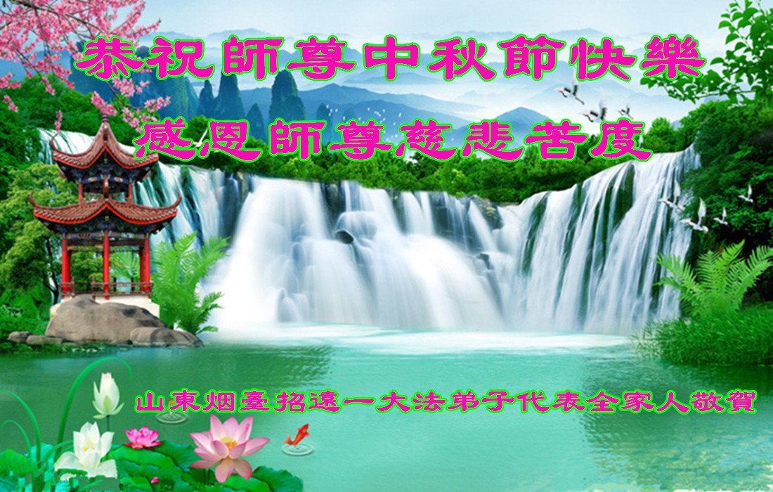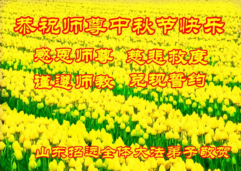 佳节倍思亲!我们招远全体大法弟子想念师尊。师尊您太辛苦了! 我们跟随师尊风风雨雨的走到了今天,我们在大法中不断的成长、成熟起来了,师尊为我们的承受和付出,弟子们无法想象,也无以回报,我们只能用我们对师尊、对大法的一颗真诚善良的心,和坚修大法的坚定信念,扎扎实实的做好我们应该做的事情,完成历史赋予我们的神圣的责任,兑现我们和师尊立下的誓约。 请师尊相信我们一定能做好的!谢谢慈悲伟大的师尊! 山东烟台招远一大法弟子代表全家人恭祝师尊中秋节快乐!