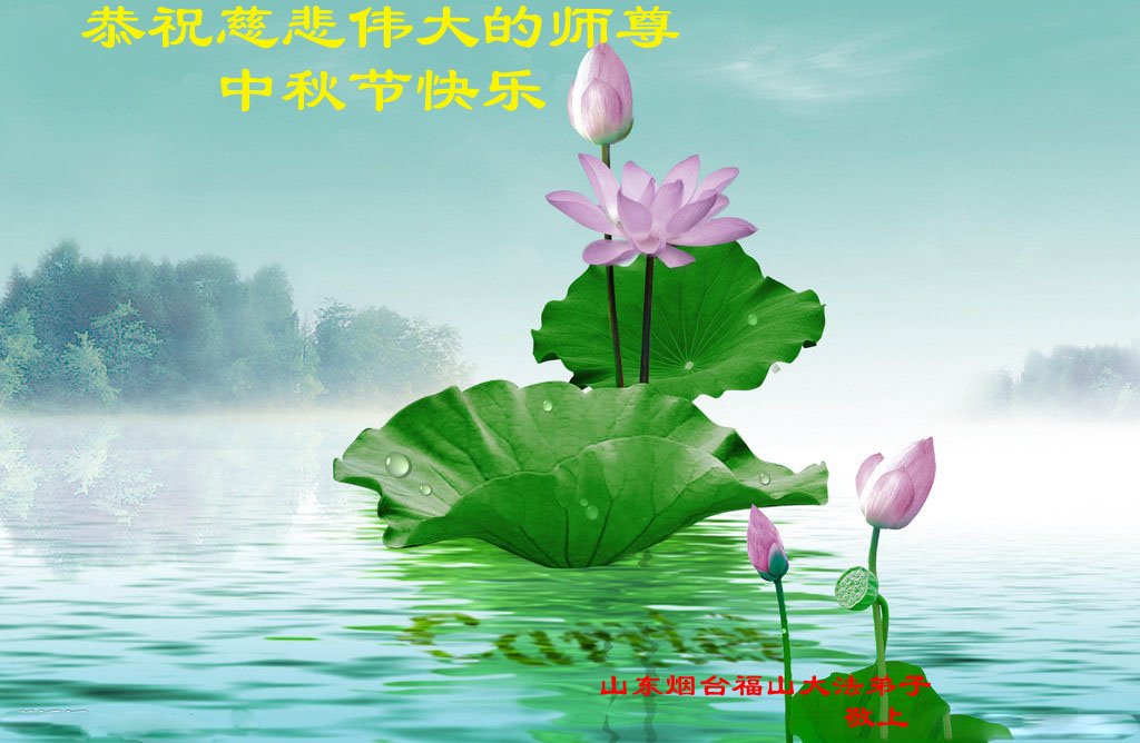 山东烟台莱山区大法弟子及家人恭祝慈悲伟大的师父中秋佳节快乐!