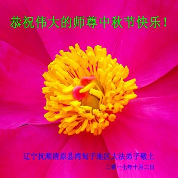 师尊您好!师尊辛苦了,弟子想念您。感谢师尊的慈悲苦度,弟子一定做好三件事,修去各种执着,欲望,圆满随师还。 辽宁抚顺清原县湾甸子地区大法弟子恭祝师尊中秋节快乐!