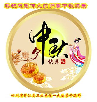 慈悲伟大的师父好!中秋节快乐!! 感恩 仰望中秋月 感恩成万千 嫦娥今何在 法造人中仙 回归 天上一轮月 人间迷一团 万事大法解 新宇待我还 四川省达州市开江县卫生系统一大法弟子恭祝慈悲伟大的师尊中秋快乐!
