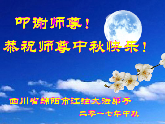 二零一七年九月廿九日 四川省绵阳市江油市大法弟子恭祝师尊中秋快乐!