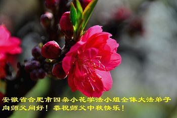 在八月十五即将到来的日子里,我们衷心敬祝慈悲伟大的师父中秋节快乐! 山东海阳夫妻大法弟子敬上 安徽省合肥市四朵小花学法小组全体大法弟子恭祝师父中秋快乐!