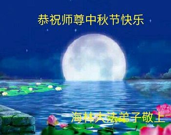 中秋节即将来临,我携全家人恭祝慈悲伟大的师父中秋佳节快乐!我要好好学法, 修好自己, 努力做好三件事, 请师父放心! 感恩师尊! 合十! 山东烟台招远一学法小组大法弟子恭祝慈悲伟大的师父中秋佳节快乐!