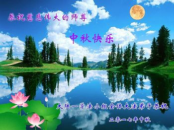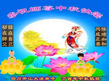 谢谢师父慈悲救度!师父辛苦了!恭祝师父中秋快乐!我们一定珍惜时间做好三件事。 大陆一大法弟子恭祝师尊中秋节快乐!