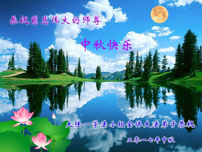 北京大法弟子恭祝师尊中秋节好!感谢师父的慈悲苦度,请师父放心,众弟子一定做好助师正法,同铸大法全盛之时,救度更多众生。 北京大法弟子合十 大陆大法弟子和家人同修恭祝师尊中秋节快乐!