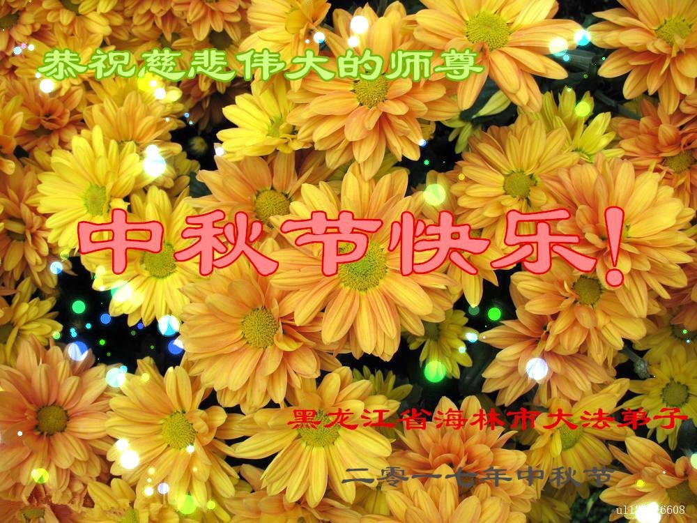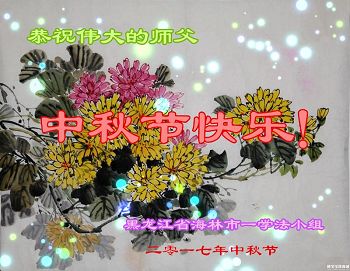 师父您好! 在2017年的中秋佳节到来之际,山东省栖霞市一学法小组向慈悲伟大的师父致以崇高的敬意!感谢师父的慈悲苦度,感谢师父为弟子、为宇宙众生的承受,谢谢师父! 在师父用巨大承受所延续来的时间里,做好一个大法弟子所应担当的,不辱使命,请师父放心。 黑龙江省七台河市大法弟子恭祝师父中秋节快乐!