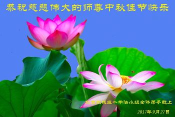 在一年一度的中秋节来临之际,弟子恭祝伟大的师尊中秋节快乐!感谢师尊救度之恩! 弟子无法报答师恩,唯有精進实修,努力做好三件事,随师坚修到底,以谢师恩。 大陆一大法弟子敬上 二零一七年九月二十六日 北京大法弟子两姐妹恭祝慈悲伟大的师尊中秋佳节快乐!