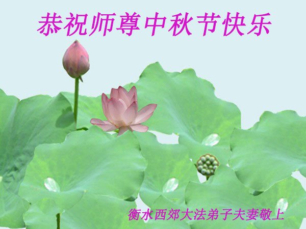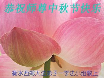 师父:您好! 弟子们想念师父,感恩师尊慈悲救度 河北省衡水大法弟子恭祝师尊中秋节快乐!