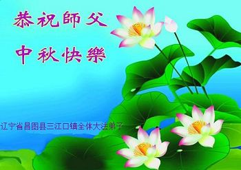 辽宁省昌图县三江口镇全体大法弟子恭祝师尊中秋快乐! 四川攀枝花市一大法弟子恭祝师尊中秋快乐!