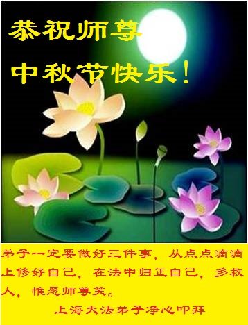 师尊:您好! 发自内心祝师尊中秋快乐!无法用言语表达对师尊的恩情! 上海浦东新区女大法弟子 东北在上海的大法弟子恭祝师尊中秋快乐!