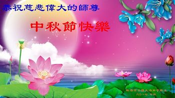 感谢师尊,把我从地狱中捞起,让我有幸在大法中修炼,我要修好自己,排除干扰,多救人,跟师父回家! 河南省郑州市荥阳大法弟子恭祝师尊中秋节快乐!