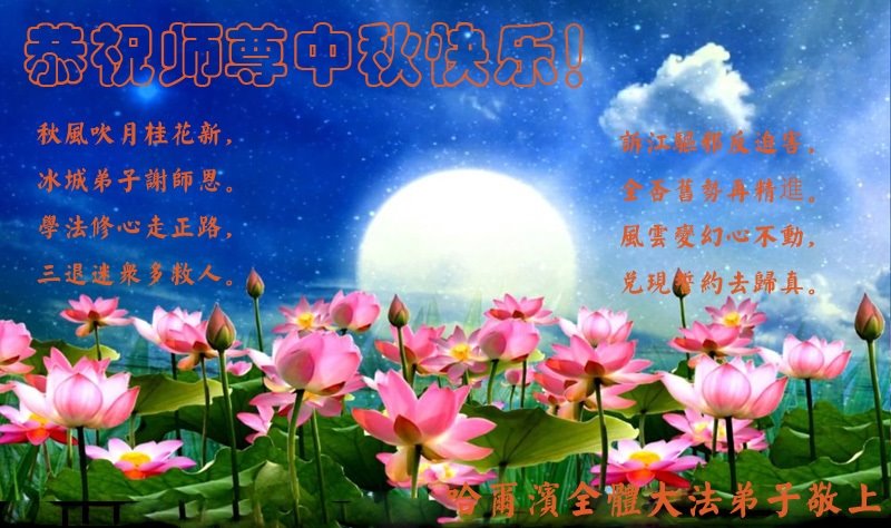 感谢师尊的慈悲救度!恭祝师尊中秋节快乐! 在黑龙江省哈尔滨打工的大法弟子恭祝师尊中秋快乐!