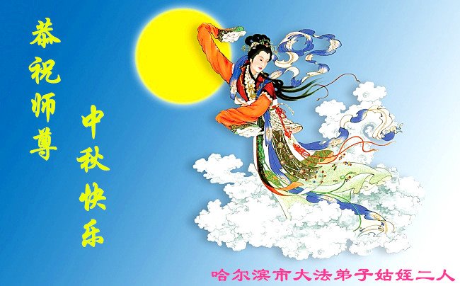 恭祝师尊中秋节快乐! 哈尔滨市大法弟子姑侄二人 黑龙江省哈尔滨大法弟子祝师尊中秋节快乐!