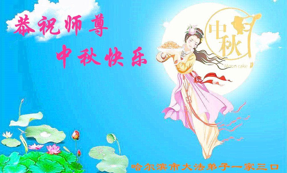 感谢恩师慈悲救度之恩!我们一定在这师尊给我们延续的最后时间里,认真学好法,找到自己的不足,我们共同用大法来归正自己,做好该做的,不辜负这万古缘,不让师父白为我们操心。一定努力完成好自己的历史使命,敬请师尊放心! 黑龙江省哈尔滨市大法弟子一家三口恭祝师尊中秋节快乐!