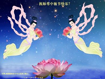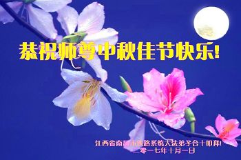 慈悲伟大的师尊您好!中秋佳节倍思亲!您的弟子及家人叩拜、感恩师尊的慈悲苦度与操劳!谢谢您慈悲伟大的师尊 江西省南昌市铁路系统大法弟子合十叩拜!恭祝师尊中秋佳节快乐!