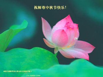 师尊好!师尊您辛苦了!弟子们千言万语诉不尽对您无量慈悲救度的感恩,只有做好三件事多救人,谢师恩! 江西宜春一大法弟子恭祝师尊中秋快乐!