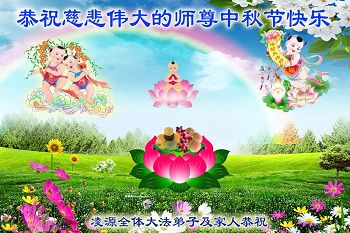 每逢佳节倍思亲,弟子盼望着那一天在中国大陆与师父团聚。谢谢师尊的慈悲苦度,弟子没做好,总是让师尊为我操心。我是多么的幸运,弟子用尽人类中所有的语言也无法表达对师尊的感恩之情。只有精進实修报师恩。 跪拜师尊! 辽宁大连一老年大法弟子恭祝师尊中秋节快乐!盼望早日见到师尊!