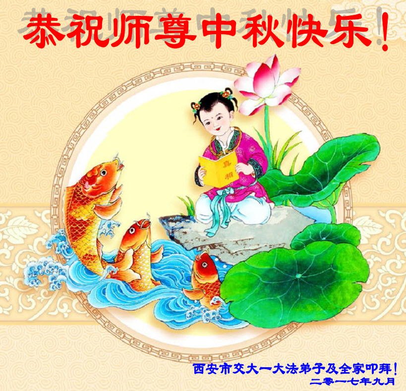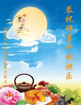 恭祝师父中秋节快乐! 叩问尊敬的师父您好,借中秋节来临之际,恭祝师父中秋节快乐!师父您辛苦了,弟子在今后的日子里,谨记师父的教诲,做好三件事,多救人,精進实修。 陕西省西安交大一大法弟子及全家恭祝师尊中秋快乐!
