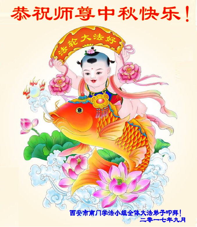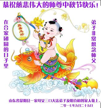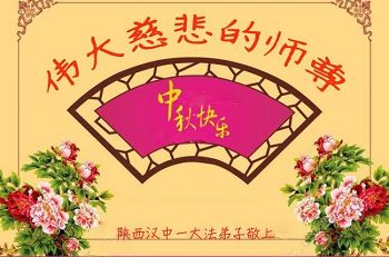 山东省潍坊市大法弟子一家三口人恭祝慈悲伟大的师尊中秋佳节快乐! 陕西省西安南门学法小组全体大法弟子恭祝师尊中秋快乐!