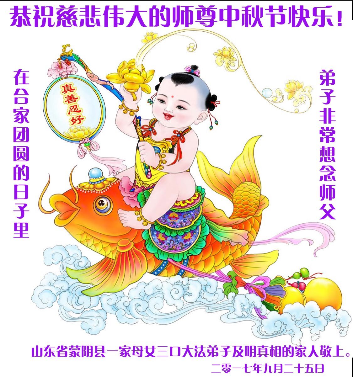 【明慧网二零一七年十月四日】 山东省临沂市蒙阴县一家母女三口恭祝慈悲伟大的师尊中秋快乐!