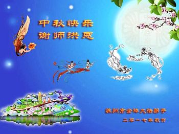 | 【明慧网二零一七年十月四日】法轮大法开传二十五年来,但凡真修者,不论年龄大小,都能在大法中受益。很多因病走入大法的,修炼不久达到无病一身轻,精神愉悦,家庭和睦。更重要的是,大法修炼使修炼者明白了生命的根本,走上了返本归真之路,是万古以来难得一遇的高德大法。 大法弟子们敬祝无量慈悲的伟大师尊中秋节快乐! 苏州市全体大法弟子中秋谢师洪恩!下世等法千年轮回 凡夫俗子生老病死 迷在浊世苦不堪言 幸遇师尊慈悲救度 喜得大法返本归真 佛恩浩荡从返天庭 湖南省怀化洪江市大法弟子敬祝无量慈悲的伟大师尊中秋节快乐!感恩最伟大的师尊 没有经过严寒的人不知道太阳温暖 没有吃过子的人不知米粒儿粗细 没有到过高山的人不知还有平地 没有修炼法轮大法的人不知道大法珍贵无比 二十多年修炼的身心巨变我由衷赞美—— 法轮大法是旷世珍宝 人类的净土 生命的根本 宇宙的奇观 境界的源泉 道德的丰碑 湖南省怀化市洪江市全体大法弟子敬祝 2017年9月 辽宁丹东东港市学法组全体大法弟子恭祝伟大师尊中秋佳节快乐!慈悲伟大的师尊,我们学法组的大法弟子一共十多人,多数年龄都在五六十岁以上,每天我们沐浴师尊的法光,我们每个人的身体都是无病一身轻,这是师父对弟子的慈悲。几年来我们一直坚持集体学法,同修之间互相鼓励,互相帮助,共同精進,共同讲真相救度众生。师父正法已经向法正人间过度了,一切都到了最后的最后,我们一定更加珍惜师父慈悲于弟子的大法修炼机缘,更加珍惜师父对弟子的慈悲苦度,更加珍惜师父为弟子延续来的最后的这段修炼时间,认真学法向内找,精進实修自己,继续做好大法弟子三件事。弟子叩谢伟大师尊! 北京石景山区八十岁大法弟子恭祝师尊中秋快乐!我今年快八十岁了,有人问我几岁?没有一个猜对的,因为我脸上光光的、白白的,没有皱纹。我就告诉人家,我是修炼法轮大法的,才这么年轻,告诉人们“天安门自焚”是假的,是江泽民栽赃陷害法轮功,所以现在有二十多万人诉江,顺便就把人家劝“三:退.”了。 北京石景山区大法弟子 跪拜敬上 湖南省郴州市柿竹园一大法弟子全家恭贺慈悲伟大的师父中秋快乐!一九九五年我修炼了法轮大法,迎来了我生命的灯塔。我全身心地投入到修炼当中,我的身心发生了巨大的变化,我终于尝到了无病一身轻的幸福滋味。 师父告诉我们“一人炼功全家受益”(《澳大利亚法会讲法》),确实如此:婆婆年逾九十五岁高龄安详的离开人世;丈夫、儿子、孙子都受到了师父的庇佑,免去了祸患。我真的十分感谢法轮大法,是法轮大法教会了我用一颗真心、善心、耐心做一个好妻子、好儿媳、好母亲。 黑龙江省富裕县一老年大法弟子祝师尊中秋快乐!师尊好!八十岁的老弟子恭祝师尊中秋愉快! 弟子九六年得法,每天都沐浴着大法的佛光。儿女都在大法中受益。弟子深知,这是师尊用洪大的慈悲为弟子承受着一切。师父啊!弟子用尽人间的语言都难以表达对师尊的感恩!只有精進实修,做好三件事,用一颗坚定的心,助师正法,跟上师父的正法修炼進程。 再次恭祝师尊中秋愉快! 邯郸一老年女大法弟子恭祝师尊中秋快乐!师尊您好!我自九八年八月修炼大法以来,身体健康、精神愉悦,再没有吃过药打过针,真是无病一身轻了。谢谢师父!谢谢大法! 我修炼了大法,按真、善、忍做人,化解了与家人的矛盾,解脱了与世人的争吵,因此家庭和睦,邻里相处融洽,美哉!善哉!谢谢师父!谢谢大法! 在这正法即将结束之际,我要努力做好三件事,圆满随师还。 谢谢师尊! 北京丰台区大法弟子及全体家人恭祝师尊中秋节快乐!修炼前我的身体很弱,有心脏病、风湿病等。1996年修炼法轮功后,师父给我净化身体,我的心脏病、风湿病不知不觉的消失了,无病一身轻。 我给兄弟姐妹送去护身符,一次一次的给他们讲大法真相,让他们记住“法轮大法好”,“真善忍好”,让他们也能感受到大法的洪恩。 在家我要照顾丈夫、照看孙女,又要学法、炼功、发正念。在百忙中我安排好一切。丈夫天天念“法轮大法好”“真善忍好”,心情好,酒不喝了,也不出去跟人家打架了,身体也越来越好。孙女也念“法轮大法好!真善忍好!”长的漂亮又聪明,在幼儿园主动帮助老师照顾同学,经常受到老师的表扬。家人都明白法轮功真相,退出了邪*党-的党、团、队组织,还参与了举报了江泽民,现在他们都沐浴在师父的洪恩中。我炼功全家受益。 我一定听师父的话,学好法、修好自己、做好三件事,兑现誓约跟师父回家。 再次恭祝师尊中秋节快乐! 北京丰台区一大法弟子及全体家人敬上 北京弟子祖孙三人祝慈悲伟大的师尊中秋快乐!师尊一次又一次的将我和孙子在突发的危难中救了回来,才使我和两个孙儿能幸福的沐浴在师尊的佛恩浩荡之中。中秋到了,我和孙子敬祝师尊中秋节快乐! 在这里我只想和师尊说:今后一定努力带好小弟子,修好自己多救人,跟师回家! 祖孙三人想念师尊,叩拜师尊! 广州大法弟子恭祝慈悲伟大的师尊中秋快乐!一尊巨佛耀天宇 万众仰望盼佛度 得法方知法珍贵 唯有精進报师恩 五尺之躯一身浊 洗净才可去天国 天国众生等我归 圆满飞天随师回 广州大法弟子 二零一七年九月 山东烟台市龙口市大法弟子恭祝师父中秋快乐!时间飞快的流逝,一年一度的中秋佳节来临了。在这佳节到来之际,弟子更
