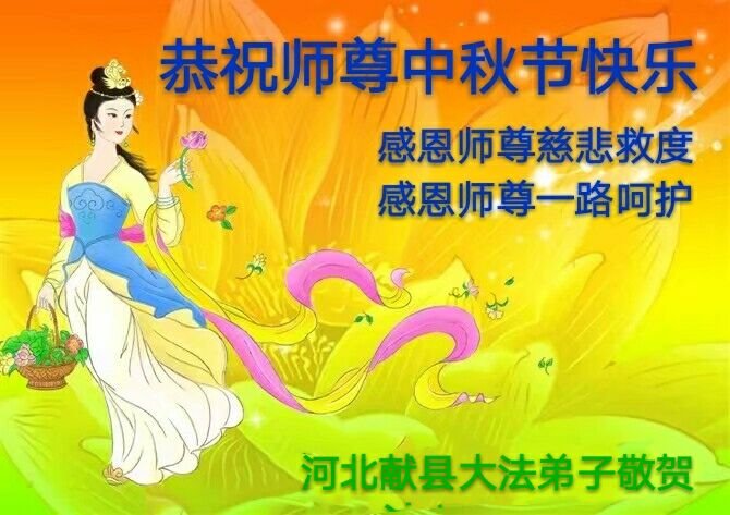 弟子感恩师尊的慈悲救度!从家人的被迫害到无罪释放,我深深的感受到了:弟子正念足 师有回天力。修炼是艰苦的也是快乐!的。 河北省邢台地区清河县大法弟子恭祝慈悲伟大的师父中秋快乐!