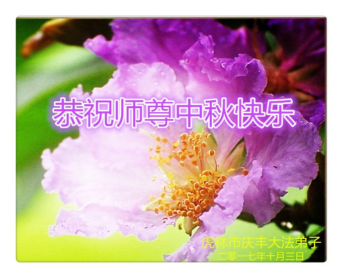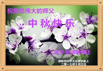 请师父放心,我们一定在正法最后阶段要更加勇猛精進,做好三件事,救度更多的有缘人,兑现我们的誓约,完成我们的使命。 一大陆大法弟子及全家祝师父中秋节快乐!