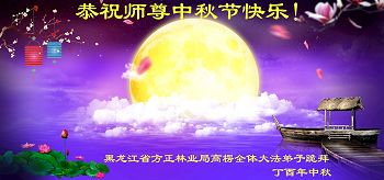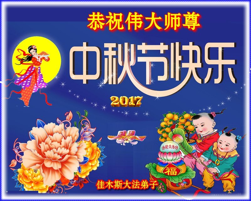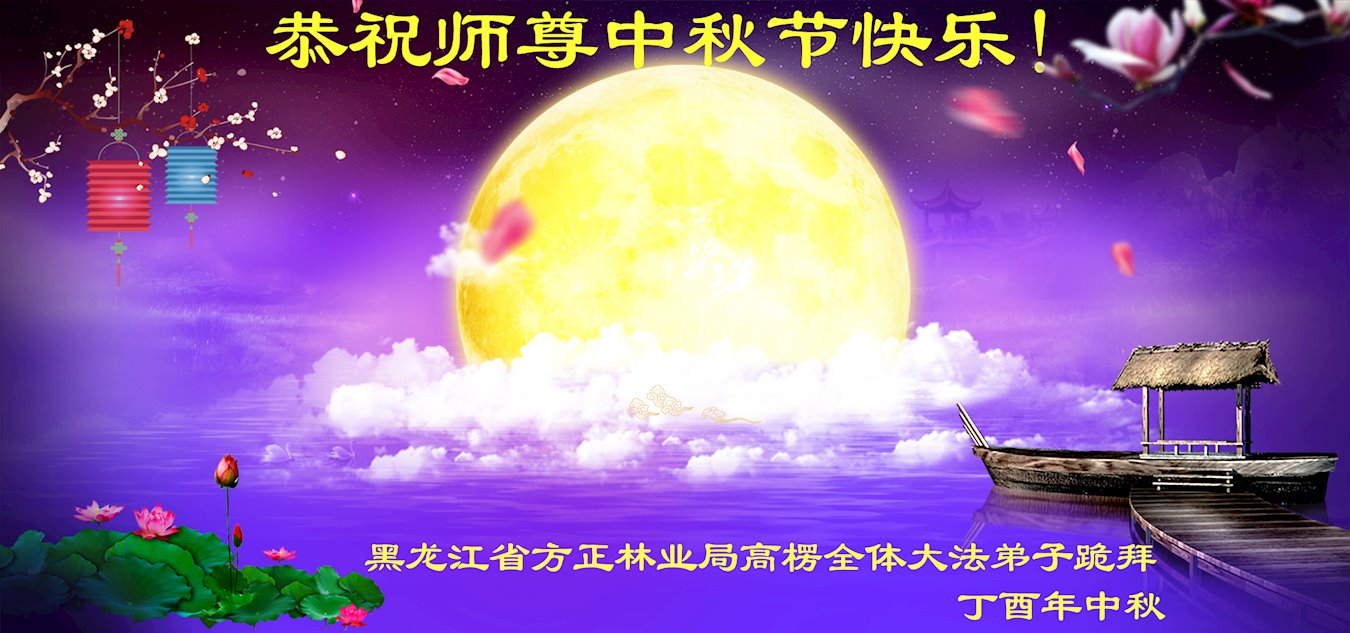 弟子虽然身陷牢笼,但是不配合邪恶的命令和指使,弟子不忘来世大愿,不负责任与使命。做好大法弟子该做的,以报师恩。值此2017中秋,恭祝慈悲伟大的师父中秋节好! 黑龙江省方正林业局高楞一学法小组大法弟子恭祝师尊中秋节快乐!