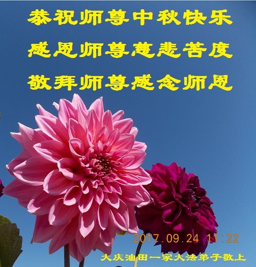 中石化系统大法弟子恭祝师尊中秋节快乐! 无论在哪里大法弟子都会好好修,兑现誓约,回报师尊! 正法即将结束,弟子们会更加精進,做好“三件事”,兑现誓约! 吉林省长春出版界大法弟子祝师尊中秋快乐!