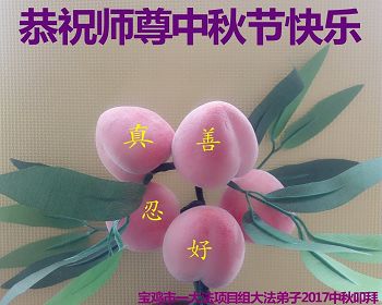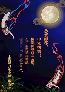 恭祝师尊:中秋快乐!感谢师尊慈悲苦度,弟子要精進再精進,修好自己,救度更多人。上海讲真相小组敬贺 陕西宝鸡市一大法项目组大法弟子恭祝慈悲伟大的师尊中秋节快乐!