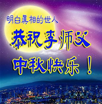 祝李大师中秋快乐! 中秋节就要到了,我们恭祝李大师中秋佳节快乐!感恩李大师救度,我们都支持法轮功! 北京怀柔区明真相世人敬上 北京怀柔区明真相世人祝李大师中秋快乐!