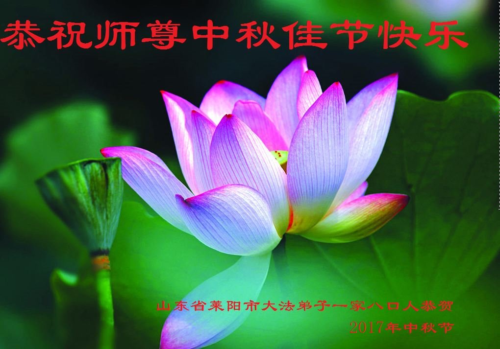 一年一度的中秋节到来之际,我们五口之家以无限感恩的心情,恭祝师尊中秋节快乐!同时道一声:师父辛苦了!我们想念师父。二十年来,我们全家感谢师父的慈悲呵护与救度!使我从一个疾病缠身的人变成了一个真正身心健康的人,二十年来从没打过一次针,没吃过一粒药,十多种疾病不治而愈。 我真正体验到了按“真、善、忍”宇宙大法要求自己做一个好人,更好的人,才能使自己真正的健康和快乐! 大法福益我们全家,我的家人看到我和儿子修炼以后,身心发生着巨大变化,处处与人为善、为他人着想、不计较个人得失。丈夫儿媳孙子都认同大法好!而且常念大法好!他们也都身心受益。特别是小孙子已经十岁了,小时候爱看神韵。每次发烧、感冒、咳嗽都是看神韵,念“法轮大法好”好的。现在小孩子非常健康,也很仁义。我们五口之家受益于法轮大法!我用尽人间语言,也无法感恩师父的佛恩浩荡!和洪大的慈悲!我真心希望普天下所有众生,不要听信中共的谎言欺骗,早日了解真相,站在正义与良知一边,为自己及家人选择光明的未来! 弟子跪拜师尊! 辽宁抚顺一母女俩大法弟子恭祝师父中秋节快乐!