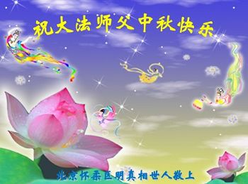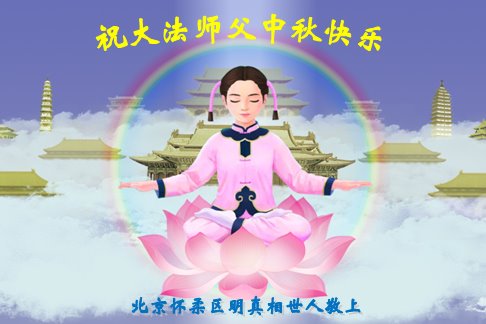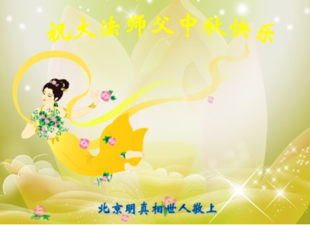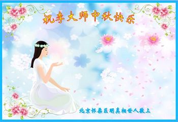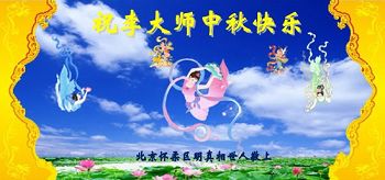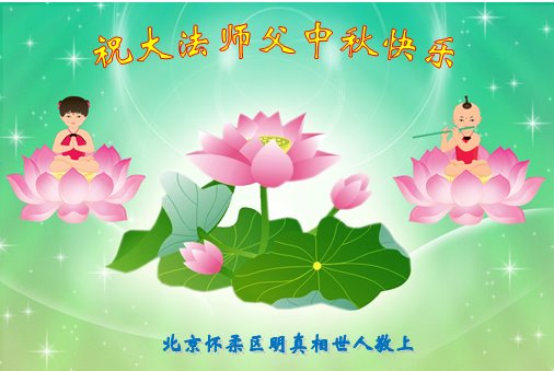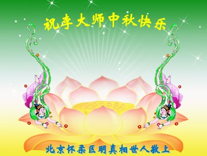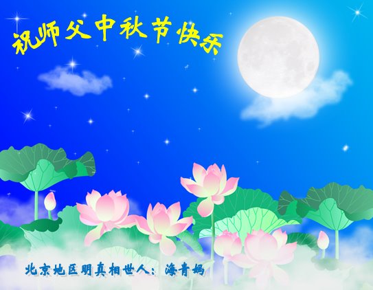 祝大法师父中秋快乐! 我们经常能遇到法轮功学员给我们讲真相,使我明白了真相不再相信中共宣传诬陷法轮功的谎言了。我们很佩服法轮功学员为坚信信仰付出的一切。我们支持法轮功学员为我们所做的一切。感谢大法师父慈悲救度。再次祝大法师父中秋快乐! 北京怀柔区明真相世人敬上 北京地区明真相世人祝大法师父中秋佳节快乐!