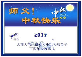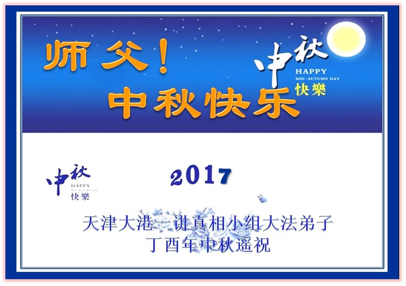 恭祝师尊中秋节快乐!黑龙江省海林市邮寄真相信小组全体成员敬上 天津滨海大港一讲真相小组大法弟子恭祝师尊中秋节快乐!