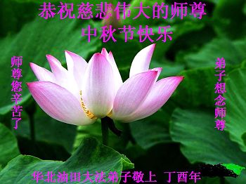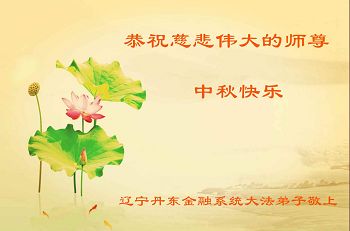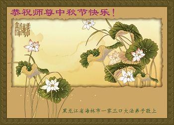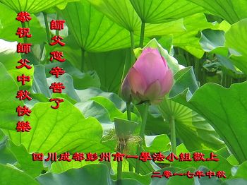 恭祝慈悲伟大的师尊中秋节快乐!辽宁丹东一学法小组敬上。 辽宁省大连市一老年大法弟子恭贺师尊中秋快乐!