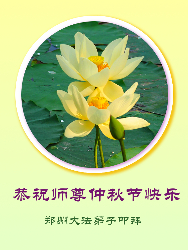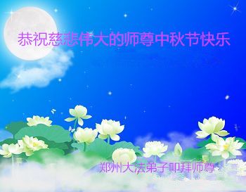 又是一年的中秋节快到了,我们河南郑州全体大法弟子叩拜慈悲伟大的李洪志师父,恭祝师尊中秋节快乐!弟子们的每一步都离不开您的慈悲呵护,弟子们想念师尊!请师父放心,我们大法弟子决不辜负师尊的慈悲救度,一定会抓紧时间学好法修好自己,做好三件事,完成好救度众生的使命,圆满随师还! 河南郑州大法弟子叩拜师尊 郑州大法弟子恭祝师尊中秋节快乐!