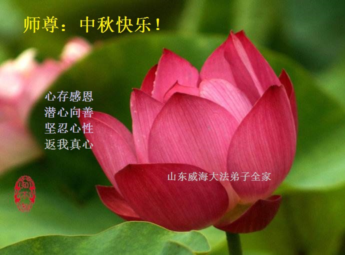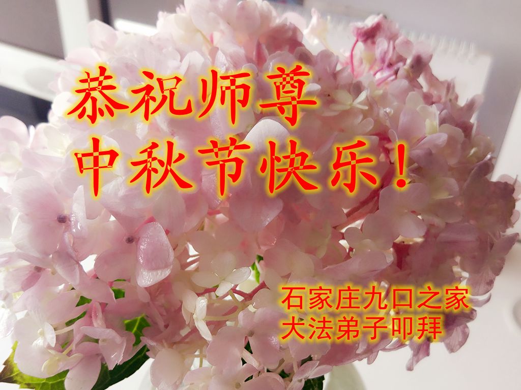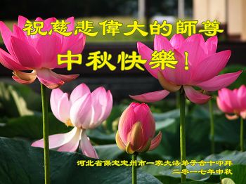 师尊好! 风风雨雨过去这么多年了,弟子和家人都倍感师恩浩荡,有家人的逢凶化吉、祛病安康,还有感谢师尊每分每秒的看护与救度,弟子被迫害时承蒙师尊庇佑才能全身而退,重获自由之身。值此中秋佳节弟子及全家恭祝师尊中秋节快乐!弟子叩拜师尊!感恩!感恩!感恩! 河北一学法小组全体大法弟子祝愿师父节日快乐!