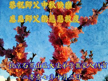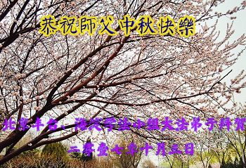 谢谢师尊的慈悲苦度,弟子一定勇猛精進,修好自己,救度众生,跟师父回家! 北京大法弟子恭祝师尊中秋节快乐!
