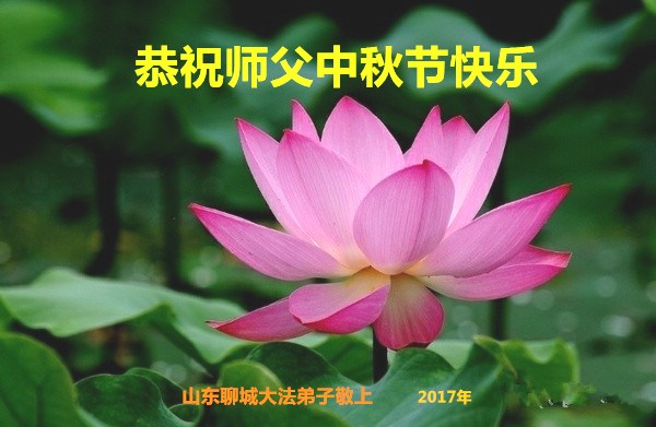 山东聊城全体大法弟子恭祝慈悲伟大的师尊中秋节好! 山东聊城一资料点全体大法弟子恭祝慈悲伟大的师尊中秋快乐! 无法用语言感谢师尊的慈悲苦度。唯有精進实修,做好三件事,回报师恩。 山东聊城全体大法弟子恭祝慈悲伟大的师尊中秋节好!