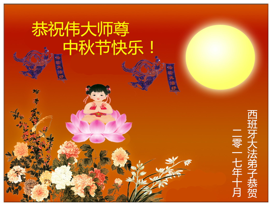 弟子一定珍惜师尊用巨大的承受和付出延续的时间,修好自己,做好大法弟子必须做的事,走正走稳走好最后的路,圆满随师还! 西班牙大法弟子恭祝慈悲伟大的师尊中秋快乐 !