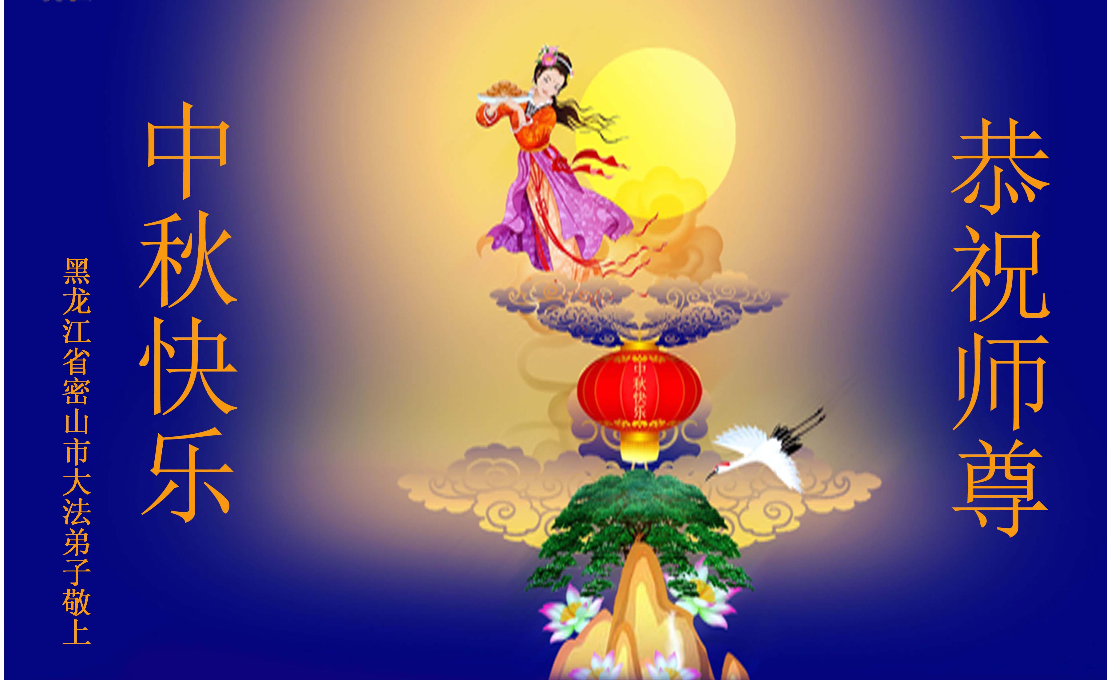 弟子恭祝师尊中秋佳节快乐!在这段时间里,弟子想明白了自己要走的路。感谢师尊慈悲点化,再次恭祝师尊中秋快乐! 大连金州大法弟子恭祝师尊中秋节快乐!