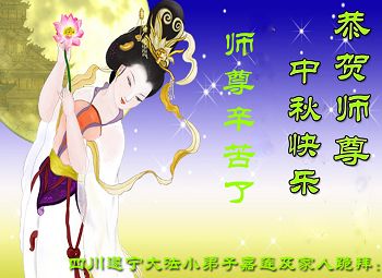 每逢佳节倍思亲, 今逢中秋念师尊, 随师修炼二十载, 每次提高师苦心。 弟子感恩无以报, 唯有精進再精進, 不敢辜负师苦心。 中秋佳节拜师尊, 弟子唯愿师欢心。 山东省沂水县一大法弟子恭祝师尊中秋好!