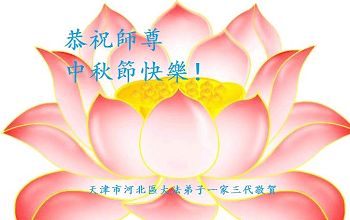 天津市河北区大法弟子一家三代恭祝师尊中秋节快乐!