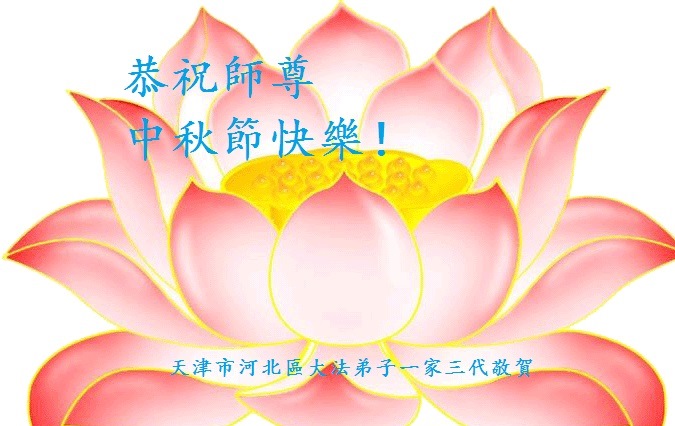 天津市南开区大法弟子一家三口恭祝师尊中秋节快乐!