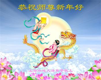 恭祝伟大慈悲的师尊新年快乐! 上海一大法弟子恭祝慈悲伟大的师尊新年快乐!