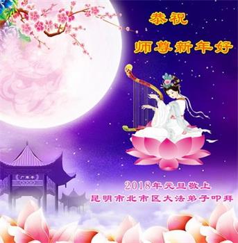 云南昆明市北市区全体大法弟子恭祝慈悲伟大的师尊新年快乐!